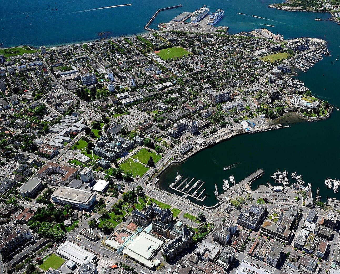 Aerial view of Victoria with James Bay taking the left side. Photo: Shutterstock