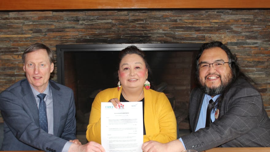 Cliff McNeil-Smith, Chief Tanya Jimmy, and Chief Don Tom sign the MOU. Photo: CRD