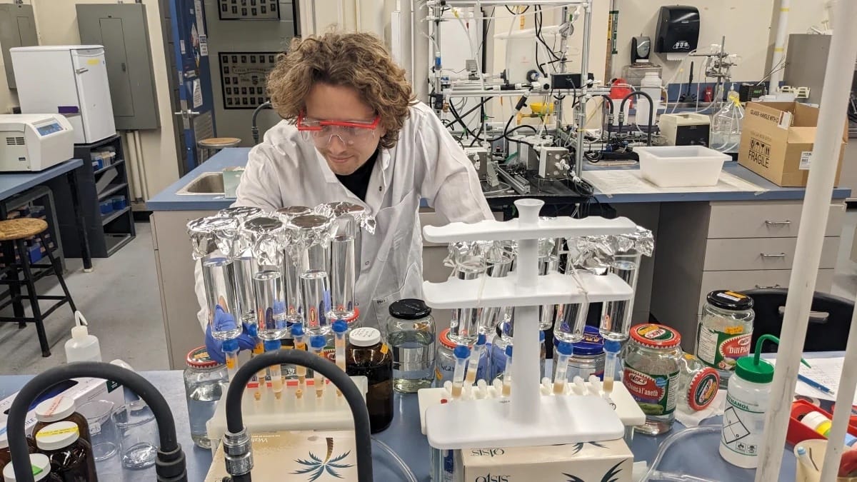 At the UBC lab, extracting samples for analysis. Photo by Simon Drew