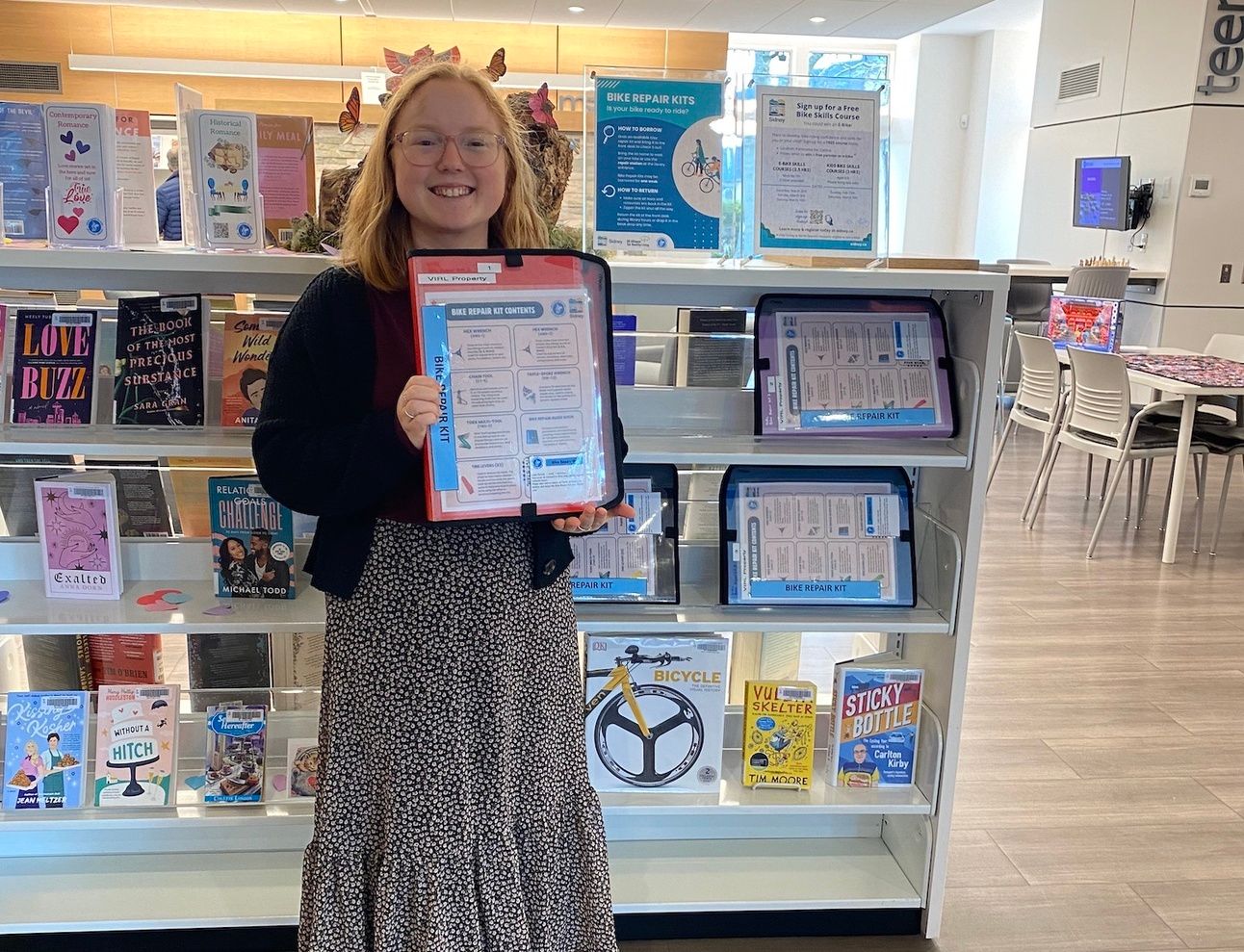 There’s something novel on the shelves in the bicycle section of Sidney’s public library–and it’s not a book.