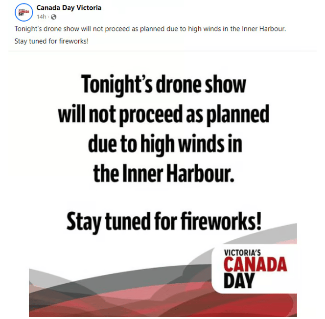 Canada Day Victoria Facebook notice from Canada Day evening.