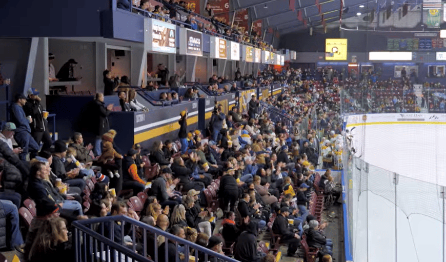 Fans take in a game at the Q Centre. Screenshot courtesy Victoria Grizzlies