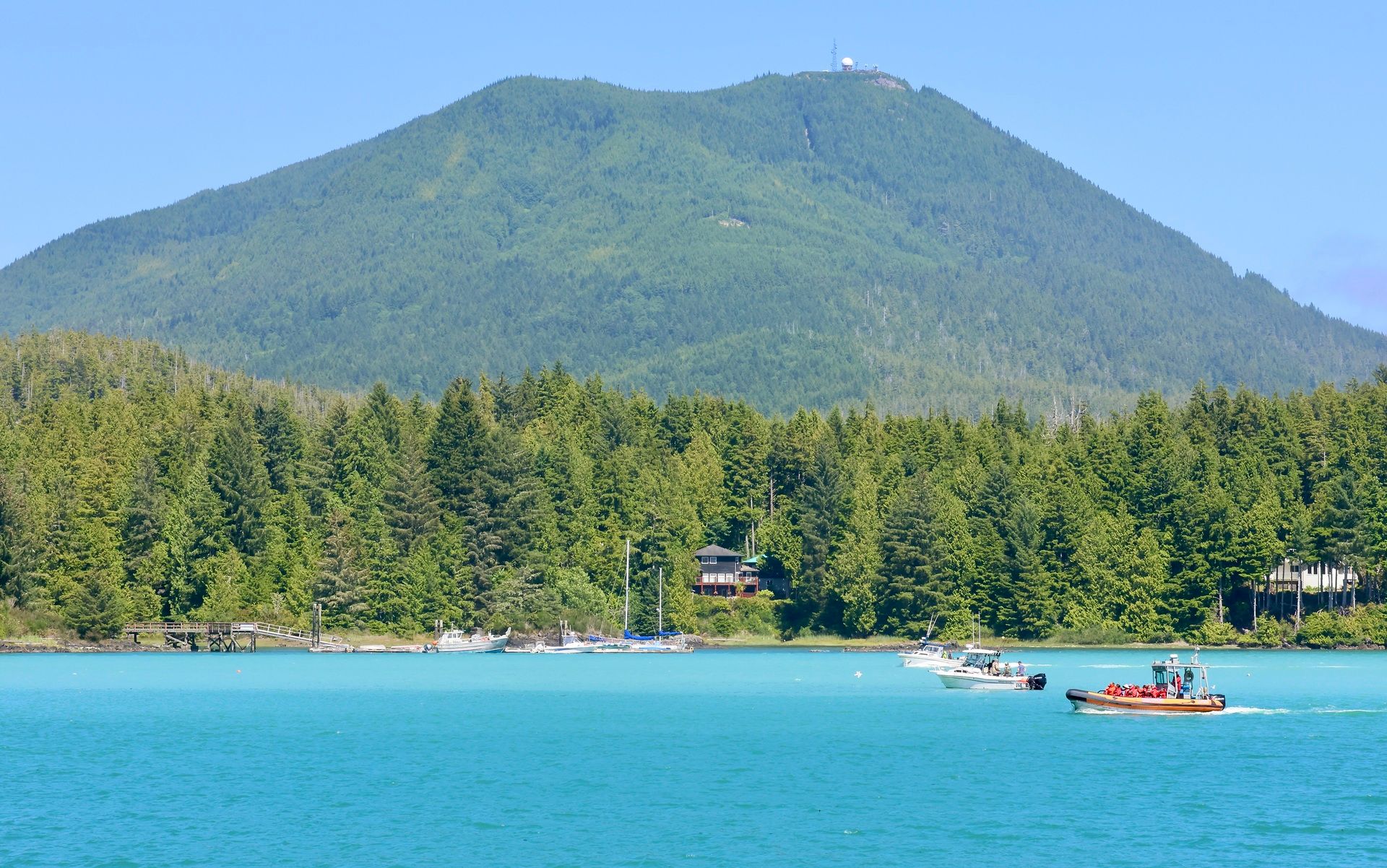 Ucluelet Harbour looks like Hawaii without the palm trees, thanks to a special algae bloom. Photo: Nora O'Malley, Local Journalism Initiative Reporter
