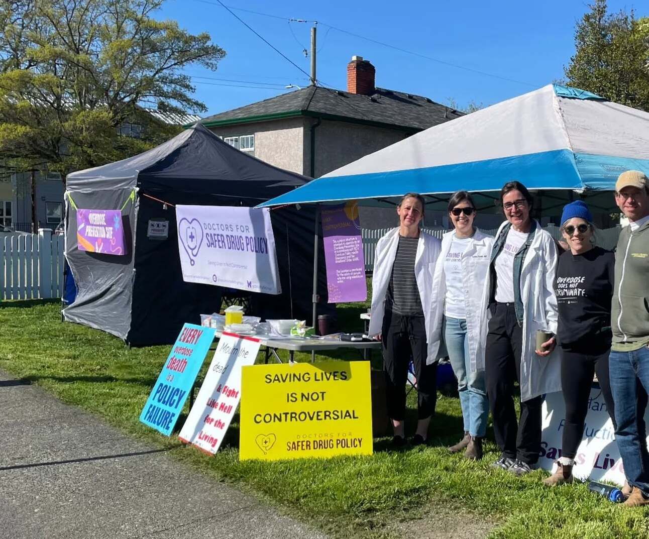 A pop-up overdose prevention site near Royal Jubilee Hospital. Photo: Doctors for Safer Drug Policy / Facebook