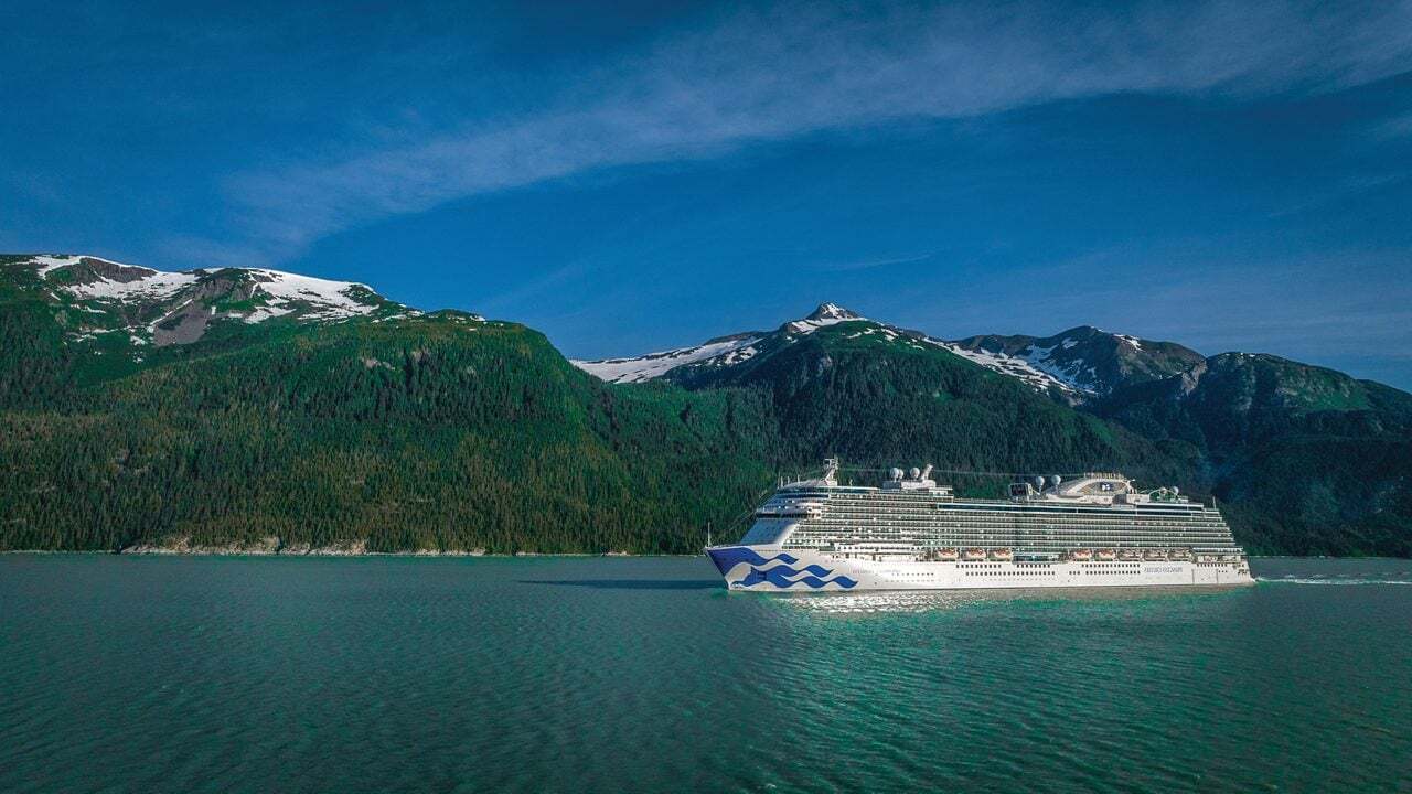 Discovery Princess, built 2022 and sailing from Skagway, Alaska under a Bermuda flag 🇧🇲. You can watch where this ship is sailing right now using its online bridge cam.