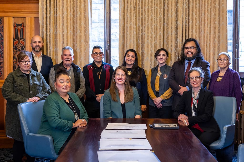 Signatories of the statement—called ‘Moving Forward and Speaking the Truth and Peace of Mind at Last’—gather for a photo. Photo: Province of BC
