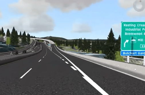 Screenshot of a computer-generated view of the Keating Cross overpass. Courtesy of BC Gov’t.