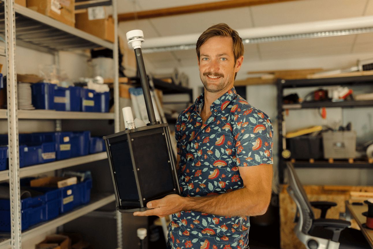 MarineLabs CEO Scott Beatty holding a rapid-deploy sensor unit. Photo: MarineLabs