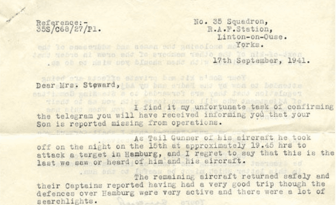 1941 letter to Mrs. J J Steward, via Canadian Letters & Images Project
