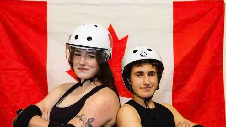 Sidney’s Chloe Crotty—known by the derby name Tuffy—and Langford’s Teaghan Dillon—known as Kitty Catapult—will don the red and white jersey and maple leaf Down Under in July.
