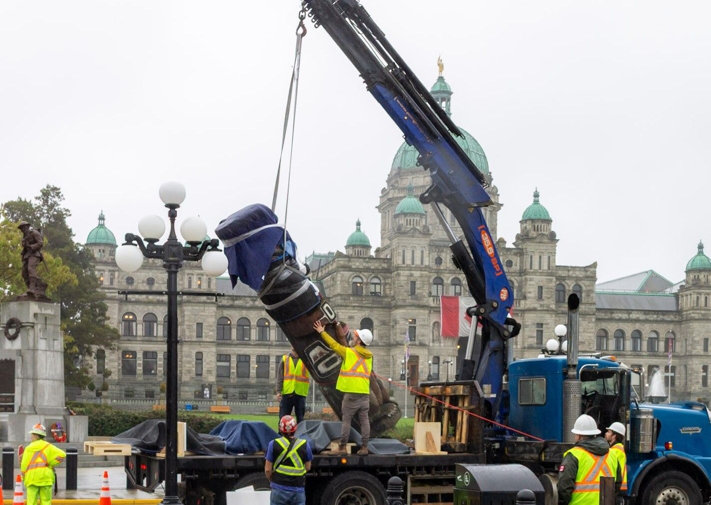 “It was hoisted off the pedestal using a crane and then carefully lowered onto a truck for the journey to Fort Rupert,” he said.
