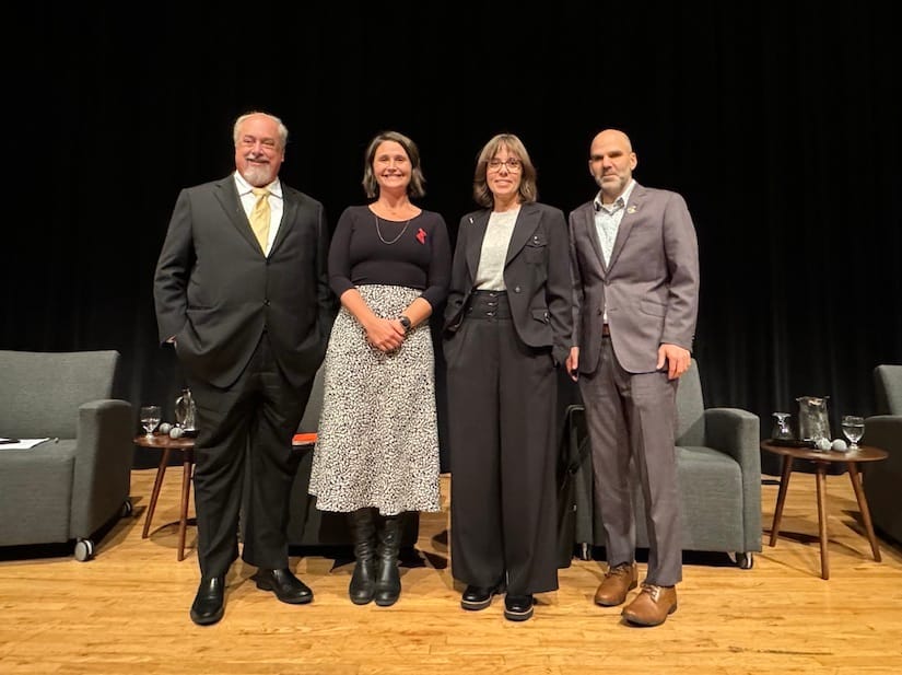 (L-R) DVBA Board President Bruce Hallsor, Grace Lore, Sonia Furstenau, Tim Thielmann. Photo: Sidney Coles / Capital Daily
