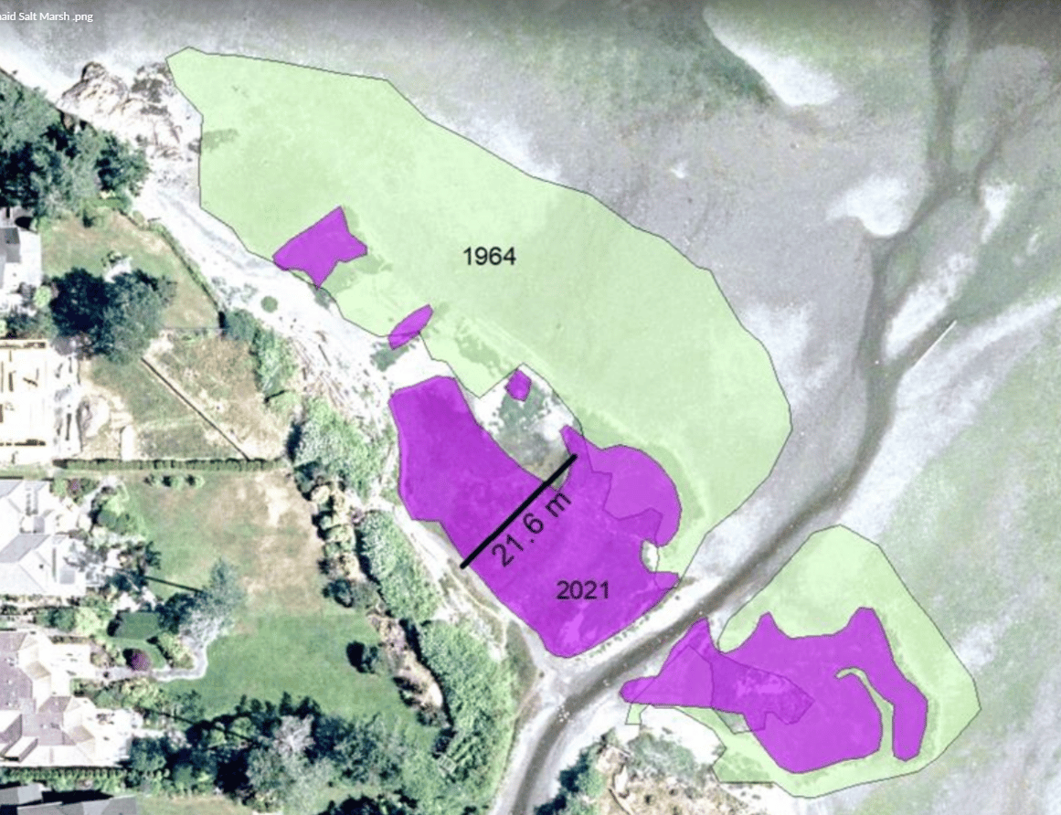 Graphic showing land decline of Mermaid Creek Salt Marsh. Photo courtesy of DHI Water & Environment, Inc.