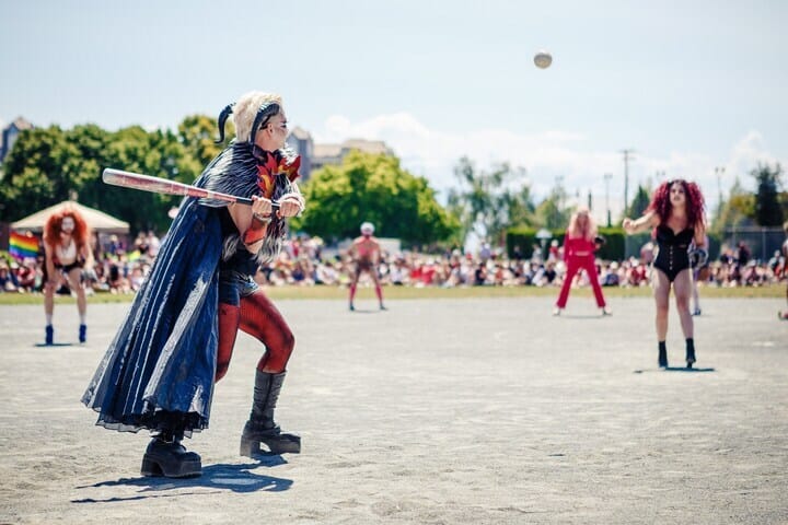 Revelers put some Pride into softball. Photo: Peter B. Jakab Photography / Victoria Pride Society
