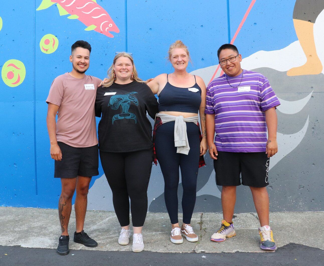 Malinski Painting is a company based in the Cowichan Valley, owned by a Ditidaht member. The company volunteered for four days to lay the primer for the mural at 221 Jubilee St., and were blanketed for their contribution at the unveiling event.