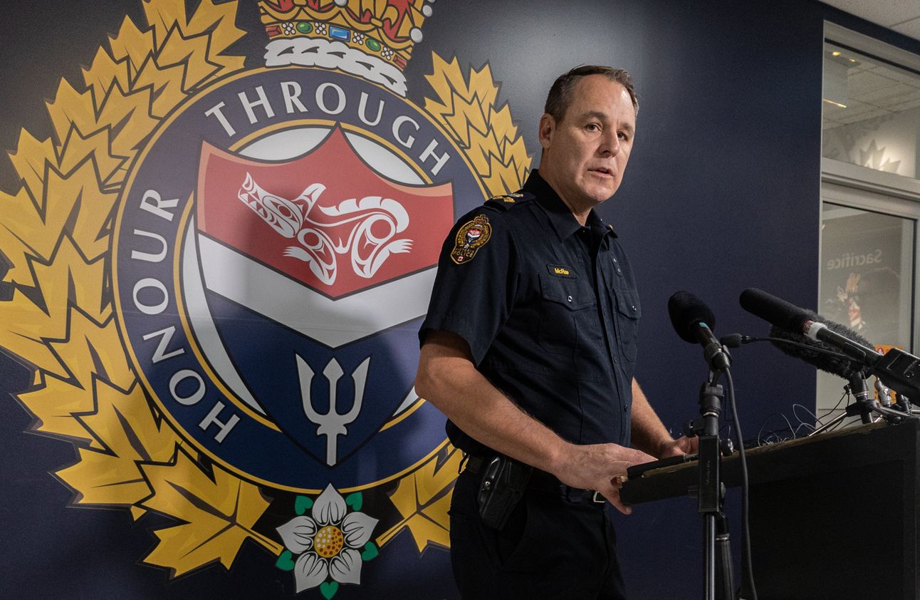 Victoria Police Deputy Chief Jamie McRae speaks at a press conference. Photo: Robyn Bell / Capital Daily