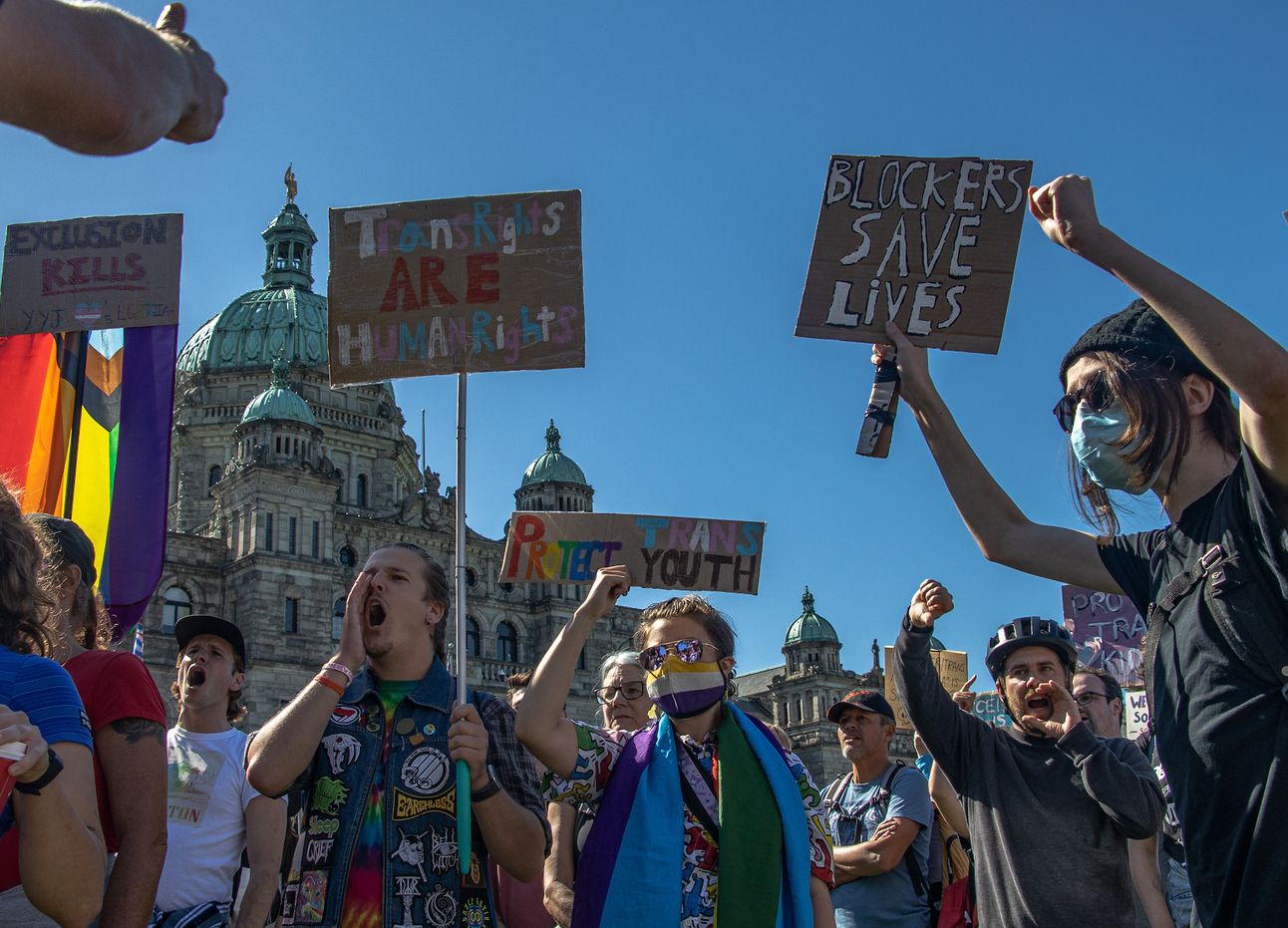 In Victoria, the counter-protest appeared to be overwhelmingly larger than the anti-SOGI protest it came out to challenge—considering Victoria has the highest proportion of non-binary and trans residents in Canada, this shouldn’t come as a surprise.