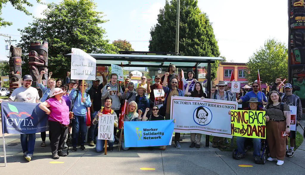 The Victoria Transit Riders Union went to Duncan to support the Cowichan transit strike last week. Photo: Worker Solidarity Network / Facebook
