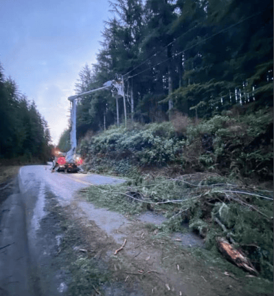 Crews fixing damage on West Coast Road near Port Renfrew. Photo: BC Hydro