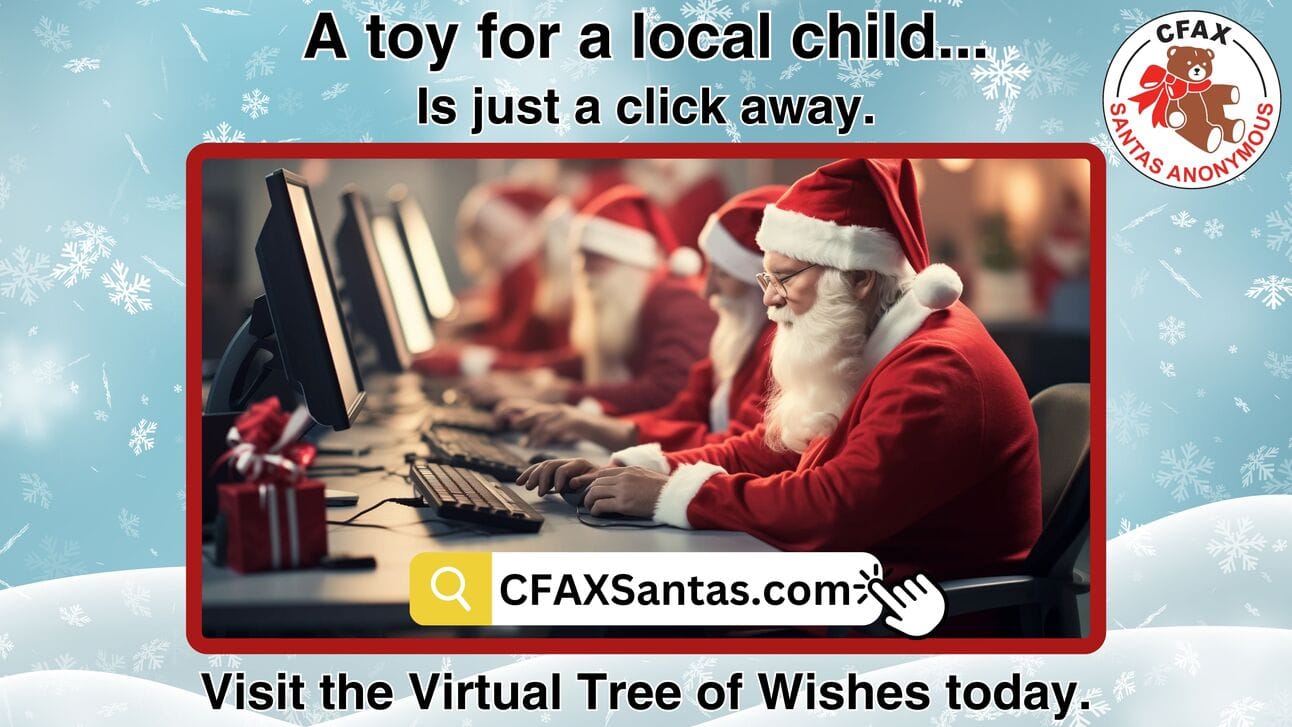CFAX Santas Anonymous, a local children's charity, is brightening Christmas for 1,200 families and 2,600 children. Join us at the Virtual Tree of Wishes, donate a child's wish, and our Elves will make it come true. Add a food hamper to complete a family's Christmas. It’s a click away.