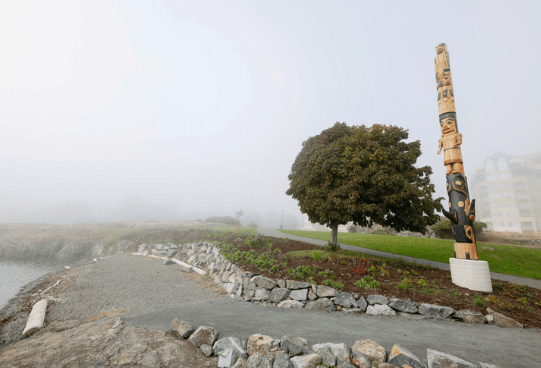 The Victoria International Marina commissioned the pole in 2017, after consulting with the Songhees and Esquimalt nations about an art installation.